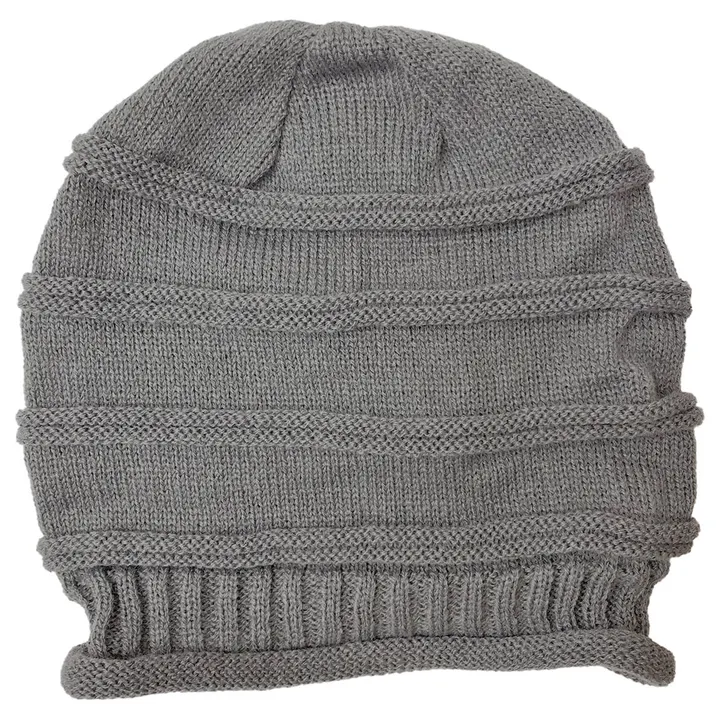 凹凸感のあるラインを入れた編み地で後ろにギャザーを入れたゆったり被れるニット帽。薄くて軽い編み地に仕上げています。