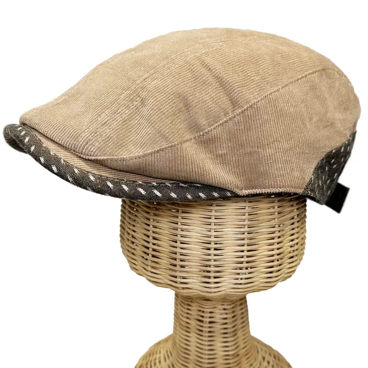 【久留米絣】ツバのパイピング、サイドに福岡県の筑後地方一帯で製造されている 伝統的な木綿織物 「久留米絣(くるめがすり)」を使用しています。 フチドリメンセントリウチボウハンチング 秋冬らしいコーデュロイのハンチングに同色のドット柄絣生地を合わせました。 コットン素材で馴染みが良く、普段使いからちょっと特別なお出かけにもおすすめです☆ 【ユニセックス】男女兼用でご使用いただけます。(サイズ調整可能) 年齢、性別を問わず幅広いファッションにあわせられるので、自分用はもちろん、プレゼントにもおすすめです。 【サイズ調整】後頭部のアジャスターベルトでお好みのサイズに調整可能です。 ご家族や親子での共有も◎