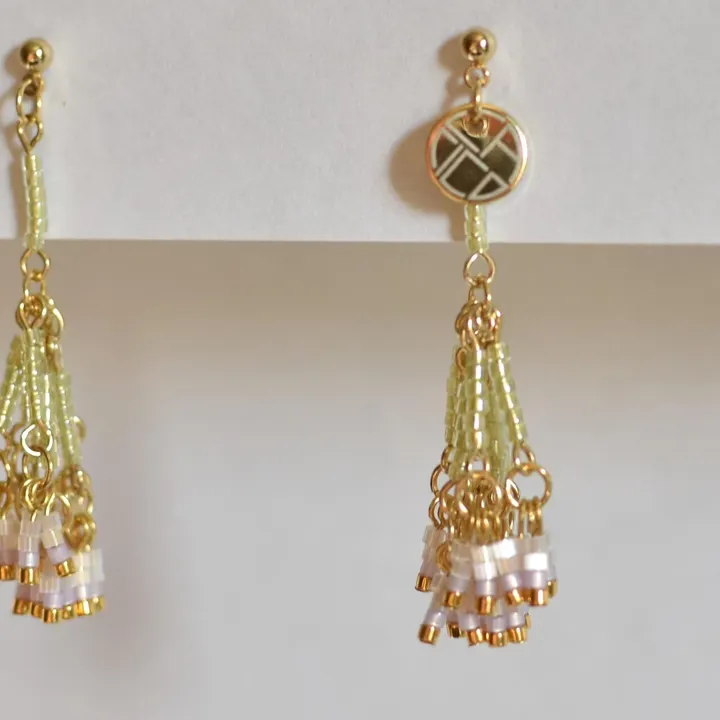 昔から食用野草として知られることから 野に生えるヒル(蒜)という意味で 蒜はネギやニンニク、ニラなどネギ属の野菜の古称だそう 高さ50〜80cmの花茎の先に 淡紅紫色の花を散形状に多数つけ 風に揺れるその咲き姿は 夏の夕暮れ時の静けさがよく似合います --- 淡い光をまとった 3色のビーズを組み合わせて 涼やかな草花を咲かせました 光の中で表情を変える素材たちは 夏の装いにそっと馴染んでくれます material K14GF ゴールドフィルド(ピアス金具)、SILVER925 金メッキ(イヤリング金具)、ガラスビーズ、真鍮、チタン、シリコン *ゴールドビーズは本金メッキ加工を施したものを使用しております *取り付ける金具によって、使用している金属が異なります size 約15x50㎜ weight 約2.0-3.0g *取り付ける金具によって、重さが異なります *CACICOの商品は全て1点1点制作しているため、個体差があり、商品写真と差がある場合がございます。ご了承の上、ご購入ください。 *金属アレルギーの方はご使用をお控えください *受注生産のため、ご注文確定後1週間~10日以内に商品を発送いたします