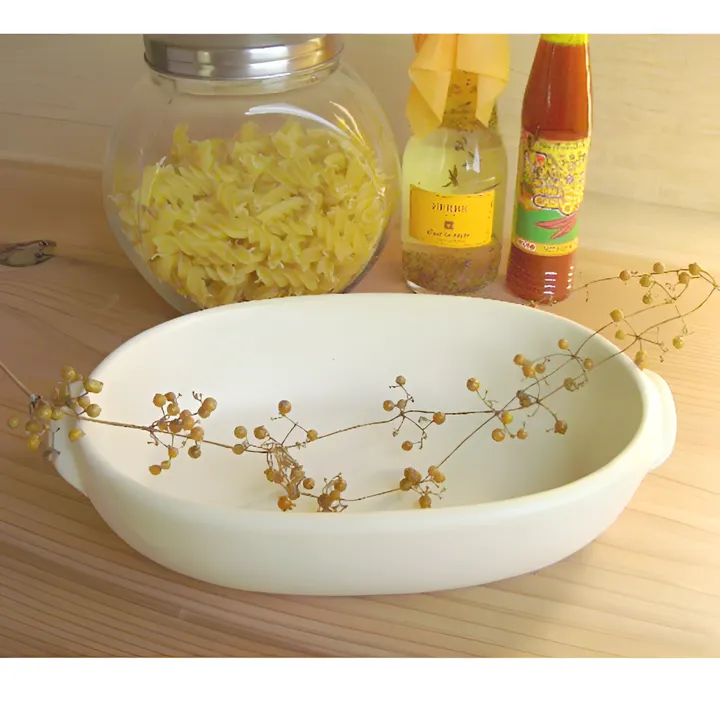 直火使用できる耐熱仕様の深めのグラタン皿です。深さがあるのでソースがこぼれることなく、グラタンやドリアができます。使い勝手の良いシンプルなフォルムをした食器です。