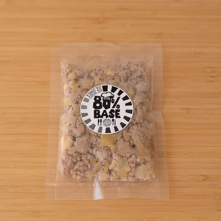 中華おこわや、ちまき。調味料を加えてナス、ピーマン、玉ねぎなど野菜と炒めてもボリュームたっぷりの一品に。 80%BASEは、オーガニックな素材で、たった20%の手間で楽しくて美味しいメインメニューが作れる革新的な食品です。 ひき肉と農薬不使用の野菜のみで製造しています。 🌱 オーガニック食材使用 健康と環境に配慮した上質な食材 🚀 手軽ワクワク調理 たった20%の手間で、まるでプロのシェフになった気分! 🌟バリエーション豊富 20%の食材を変えることで、毎日の食事が飽きることなく楽しめます。 🎨 フードアート体験 お皿がアートのように美しくなる瞬間、見逃せません。