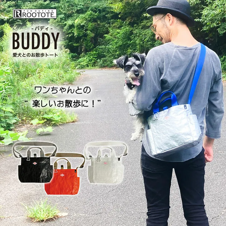 雨に強い、汚れに強い! お天気を気にせずお出かけできます♪ 愛犬とのお散歩バッグ♪ お散歩に特化した仕様になっています。 お散歩には、マナー袋、水、スプレー、ウェットティッシュ、おやつ、水飲み用お皿などたくさんの荷物が… 細々とした荷物も整理整頓しやすく、取り出しやすさを考えました。 前面と背面には2つのルーポケットがあります。 愛犬のおかしや飼い主さんのタオルなどを。 側面ポケットには、すぐ取り出したいスマホがぴったり収納。 前面についたカラビナには、マナー袋や水飲み用のお皿を引っ掛けられます。 内側には愛犬用の荷物を整理整頓できるようボトルホルダー2箇所とつりポケットがついています。 愛犬とのお散歩はとても楽しいお出かけに… ストレスフリーな使い心地。 開口部のバックルがポイント! 荷物の収まりが良く、閉じたままでも荷物が出し入れできる便利なつくり。 ショルダー付きで、トートバッグ・ショルダーバッグの2wayで使えます。 (取り外しはできません) 雨や泥で汚れても気にならないレジャーシート素材。 お散歩だけでなく、日常生活から楽しいレジャー&アウトドアなど様々なシーンで活躍してくれます。 雨の日も晴れの日もデイリーに使える頼もしいトートです。