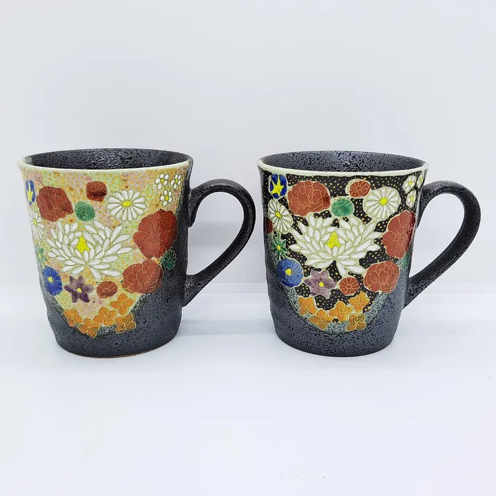 九谷焼ペアマグカップ/割取花詰