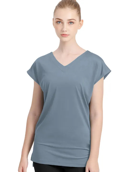バッククロス Vネック チュニック スモークブルー/Lサイズ(11-13号相当)