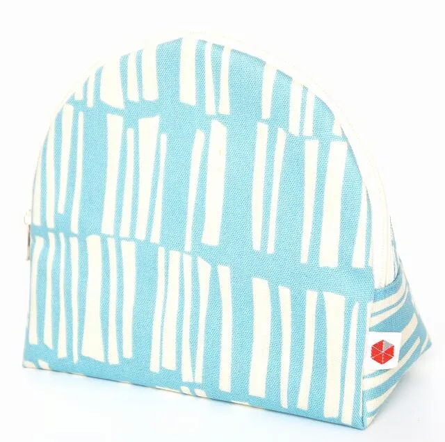 水色地に白の棒柄がランダムに並んでいます。 すっきり美しいポーチです。 sussuはメイク直しの時に中がひと目でわかり、ごちゃつかないから使いやすい、中身美人の化粧ポーチ。 化粧品をスッと出せてスッとしまえる、便利なポーチです。朝の忙しいメイクタイムや外出先での化粧直しにぴったりです。