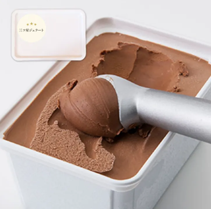 子供から大人まで人気不動のバニラ、チョコ、抹茶の3種類。オーガニック認証の商品を三ツ星ジェラートにアップデート。