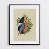 【現代アートポスター】南国 鳥 オウム 女性 おしゃれ 写真コラージュ A4(S) フレームセット:黒 29.4×38.4cm