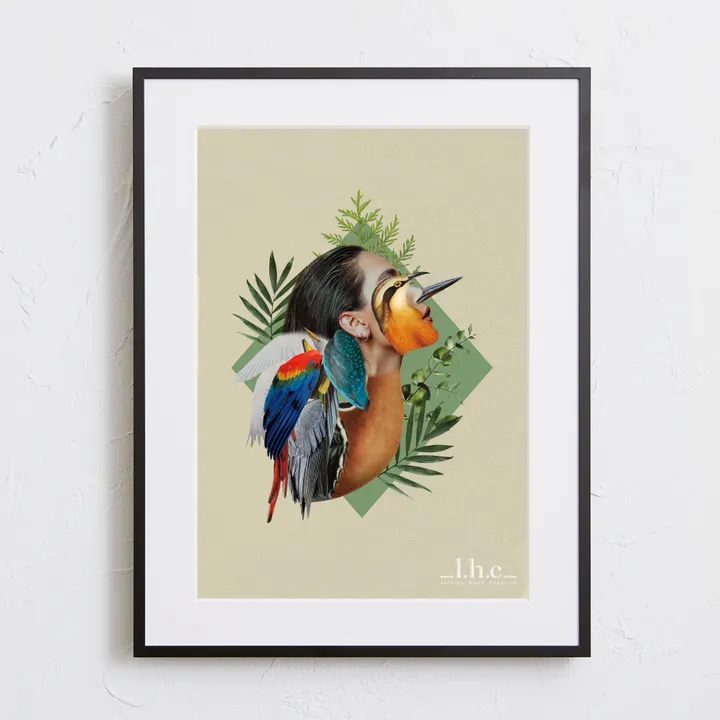 アーティスト -PROFILE- Yuria Oku(ユリア オク) Leirion Hand Creation 北海道出身 アートディレクター/デザイナー 広告やグラフィックデザインの仕事をしながら、自身ではコラージュアートや写真撮影、イラストなど幅広く活動。 写真とイラストのコラージュや合成など現実にはない、不思議で奇妙な作品を得意とする。 ファッション広告を想定とした作品も制作している。 【作品について】 作品名:Future bird 手法:デジタル、コラージュ ペーパー:高品質半光沢紙 マットカラー:白 マット*:DXホワイト芯 100%バージンパルプ/PH7・中性紙(2mm厚) ※全てのアートにマットがつきます フレームカラー:黒、白、無垢(3種類から選択) ※マット付のため通常とはフレームサイズが異なる規格となります。 【マット*とは?】 アートポスターの周りに挟んだ厚紙の事。 マットを使わない時に比べ余白により広がりが生まれ、作品の新たな一面を引き出せ作品の見栄えがグッと良くなります。また、額縁のガラス面と作品が直接触れたままにしておくと、くっついて作品を傷つけることがあります。マットを使用することでガラスと作品の間に空間ができ、作品を保護することができます。ブランドコンセプトにより全てのアートにマットがつきます。 ー ファッションのようにアートを ー 私達が掲げるコンセプトです! 毎日着替えるファッションの様に、アートも気軽に飾り変えて欲しい... 一旦飾り終えたアートにも光を当ててほしい... ポスター単体、またはリピートで中身だけのポスターを購入された方に"専用のハンガー"をセットでお届け。 「今までに無い!新しいアートの飾り方を提案」 飾る事がなくなった前のアートをハンガーにかけて洋服と一緒にかけてもらう。 その日の気分や、モチベーションですぐに取り換えられる様に。 もちろん、魅せる収納としても今までにないおすすめの飾り方です。