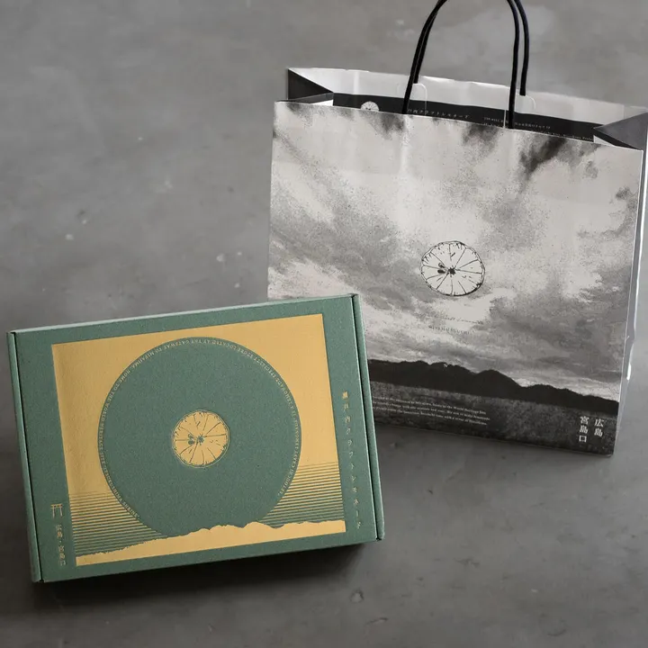 贈答用のお客様用品のセットです。 オ リ ジ ナ ル 紙 袋 ( 1 5 0 円 ) × 1 0 、 1 本 用 ク ラ フ ト ボ ッ ク ス ( 3 0 0 円 ) × 1 2、 2 ~ 3 本 用 箔 押 ボ ッ ク ス( 4 5 0 円 ) × 1 0 1、贈答用オリジナル手提げ袋 横32cm×縦31cm×マチ10cm ギフトボックスが2箱まで入ります。 厳島をデザインした宮島口ならではの贈答用ショップバッグです。 両横面には厳島神社大鳥居にある「月と太陽」をモチーフに、細かい部分までこだわって作ったバッグです。 仕事関係やお世話になった方への贈答用にいかがでしょうか? 2、【BOX for 1】ギフトボックス 瀬戸内クラフトレモネードの瓶詰め1本入りのギフトボックスです。 風合いを感じる厚手のクラフト紙を使用。 印刷はこだわりの活版印刷です。 自分へのご褒美として、また大切な人へ贈​​る際に。 中面の箱で2、3本どちらかご自身で穴を開けることができます。 瓶詰めレモネードが2〜3本入ります。 日本由来の色表現をした紙の上に、艶を抑えた金の箔押しで落ち着いた雰囲気を演出。 箔の下部には世界遺産厳島のシルエット、移り行く景色や日の変化を表現しました。