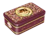 蝶つがいのお洒落なデザイン缶はギフトにもぴったり。小物やハガキ入れなどに最適です。