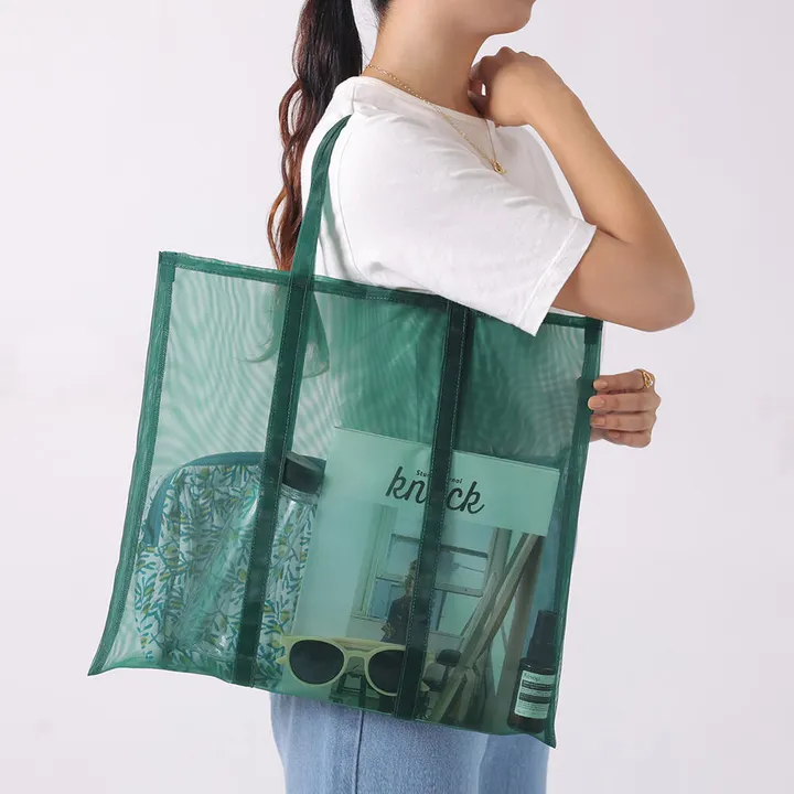 軽いメッシュのトートバッグ(2サイズ・各4色)/推し活 痛バ Lサイズ GN(グリーン)