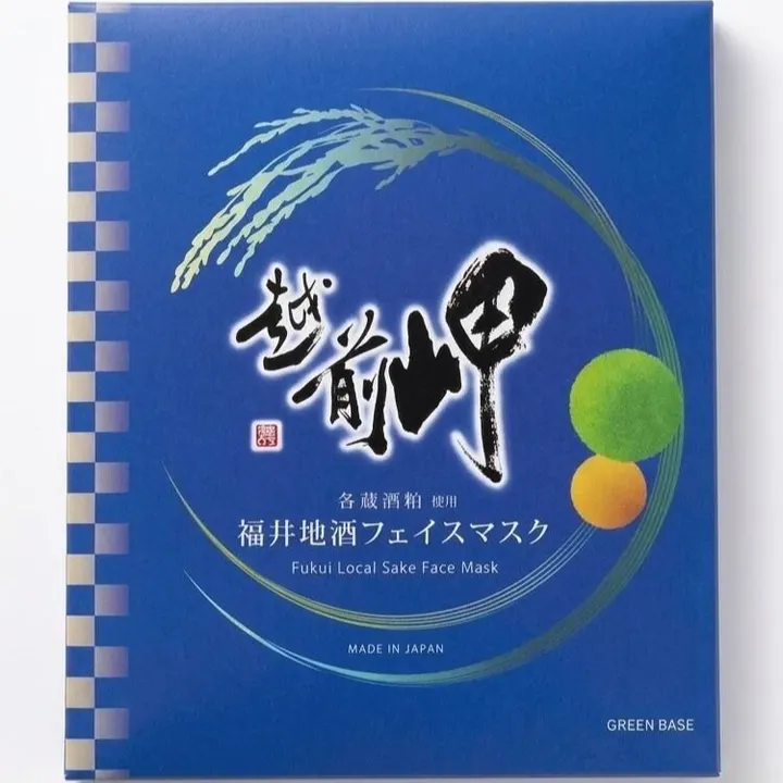 ■福井地酒フェイスマスク■ 栄養価の高い日本酒と酒粕を配合したフェイスマスクです。 洗顔後やお風呂上りにお使いいただくと、酒粕に含まれる美容成分がお肌にうるおいを与え、キメを整えます。 日本酒ーSAKEー 古くより庶民の生活に深く根付き、世界でも「SAKE」と呼ばれ広く親しまれています。 日本酒は高い美容の力も注目されております。 日本酒が好きな方も、飲めない方も親しんでもらう方法はないか? という考えから生まれたのがこの「福井地酒フェイスマスク」です。 3つのこだわり ①酒粕は美容成分の塊 アミノ酸、フェルラ酸、コウジ酸、アルブチン・・・ 挙げればキリがないほど美容成分たっぷり。 福井地酒フェイスマスクは酒粕をそのまま配合。 だから美容成分の濃さに自信があります。 ②肌へうるおいを届けるために マスクを外す寸前までしっかりうるおいを持続させるため、うるおいローションをたっぷり配合。 贅沢な保湿時間をお楽しみください。 ③香りで癒す ほんのり香る日本酒の香り。種類は全8種類。 それぞれの酒蔵が織りなす日本酒の香りをお楽しみいただけます。 ☆舞美人:美川酒造場 ☆飛鳥井:丹生酒造 ☆花垣:南部酒造 ☆越前岬:田辺酒造 ☆北の庄:舟木酒造 ☆白龍:吉田酒造 ☆福千歳:田嶋酒造 ☆月丸:西岡河村酒造 「越山若水(えつざんじゃくすい)」という言葉で知られる福井県。 越前の豊かな自然と若狭の清らかな水の流れを意味します。 福井の水は全国名水百選にも名をはせるほど。(「御清水:福井県大野市」) 米においては「コシヒカリ」発祥の地としても広く知られ、全国屈指の米の生産量を誇ります。 日本酒の原料となる米と水は豊かな自然のもとではぐくまれ、日本酒という形で福井県の自然の恵みを表します。