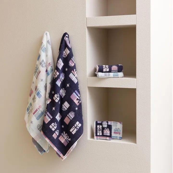 【ギフトにも♪幸せを呼ぶギフトBOX柄 今治フェイスタオル】カラフルなギンガムチェック グラッド ‟幸せを呼ぶ贈り物”をテーマに趣向を凝らしたギフトボックス柄。 色彩を重ねたカラフルな彩りに遊び心を感じられるタオルです。 ギフトボックスを引き立てるギンガムチェックが、特別な雰囲気を演出します。 今治産の優れた品質を兼ね備えた、ありそうでなかったデザイン。 大切な方へのギフトとしてもオススメです! 今治ブランド認定商品で、吸水性や毛羽落ち試験など厳しい基準をクリアした製品です。 ※JANシールの発行を希望される場合は、ご注文の際にメッセージをお願いいたします。 ※表示上の在庫がない場合や、100枚以上をご希望の場合はメッセージまたは電話にてお問合せください。 ※ギフトBOXでの対応も可能ですので、ご希望の場合はメッセージまたは電話にてお問い合わせください。(BOXは有料にて対応します。)