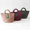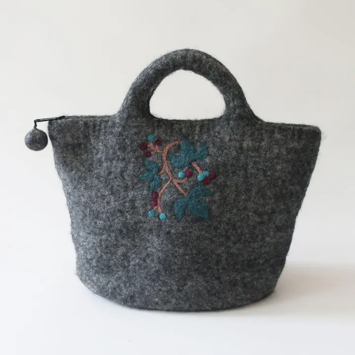 草木の中で、青や紫の綺麗な実をつける野ブドウをモチーフに。大人なコーディネートにも合わせやすい落ち着いたカラーバリエーションのフェルトバッグ。
