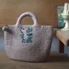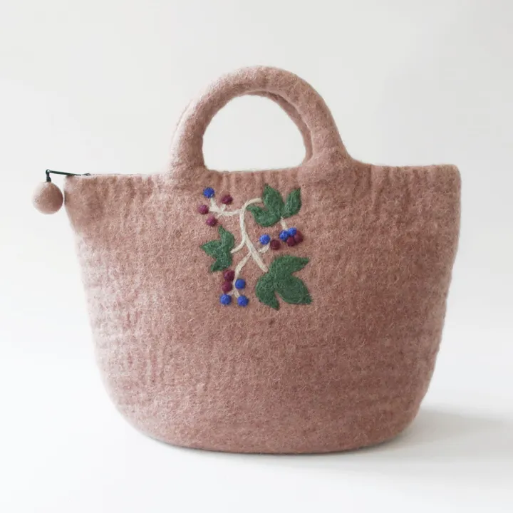 草木の中で、青や紫の綺麗な実をつける野ブドウをモチーフに。大人なコーディネートにも合わせやすい落ち着いたカラーバリエーションのフェルトバッグ。