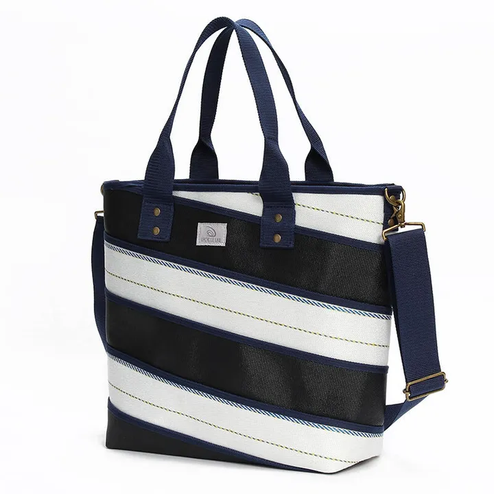 廃棄消防ホース:スパイラルトートバッグ(大) ホワイト×ブラック