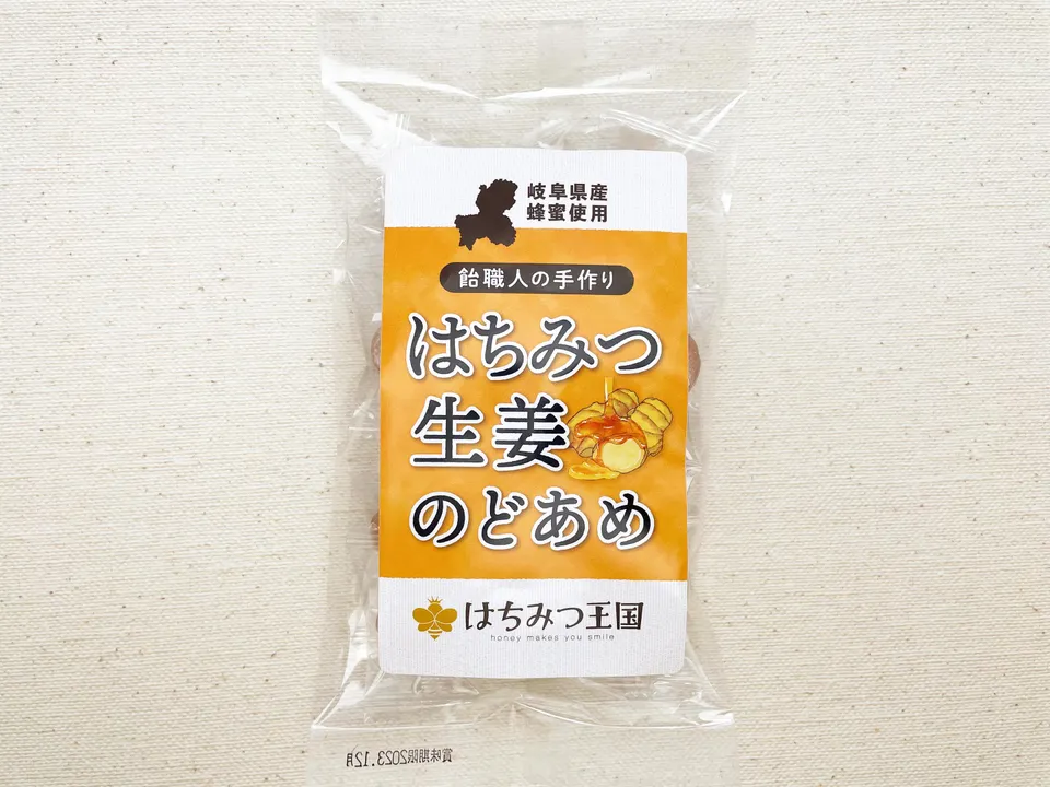 岐阜県産のまろやかで香り豊かな蜂蜜にピリッと辛い生姜をブレンドしたのど飴です。 昔ながらの直火製法でじっくり丁寧にしあげた職人こだわりのはちみつ生姜のど飴です。 個包装されているので持ち運びにも便利です。