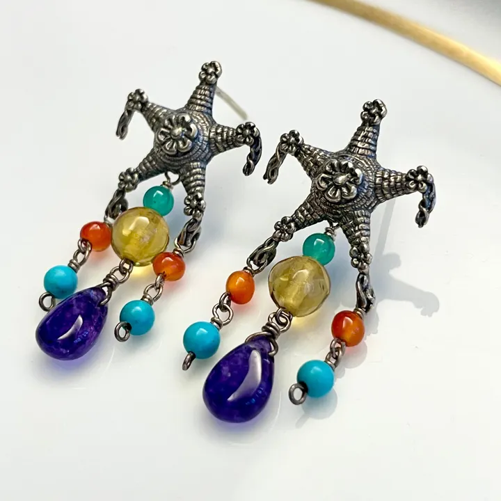 Aretes Piñata Amatista y Cuarzo|ピニャータのピアス(シルバー・マルチカラーストーン・天然石) アメジスト