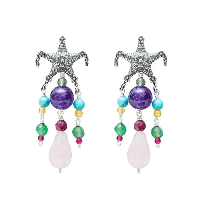 Aretes Piñata Amatista y Cuarzo|ピニャータのピアス(シルバー・マルチカラーストーン・天然石) ローズクオーツ