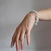 花冠(かかん)は様々な色を帯びて 花の最も美麗な部分といわれます 数片からなり その各片が花弁です 花のいのちは短く 特に桜の花弁は咲いたと思ったら ひらひらとすぐに散ってしまいますが 散り際はとても美しいものです 虫以外の私たち人間までも引き寄せ 喜びを与えてくれます 身につけた時に 花のような高貴さを纏い咲き誇り そして透き通った花弁一枚のように儚く美しい そんな存在になれることを祈って… material ガラスビーズ、真鍮、ステンレス、マグネット、テグス *シルバービーズはパラジウムメッキ加工を施したものを使用しております *留め金具はマグネットタイプを使用しております size 約180mm+50mmアジャスター weight 約10.4g *CACICOの商品は全て1点1点制作しているため、個体差があり、商品写真と差がある場合がございます。ご了承の上、ご購入ください。 *金属アレルギーの方はご使用をお控えください *受注生産のため、ご注文確定後1週間〜10日以内に商品を発送いたします