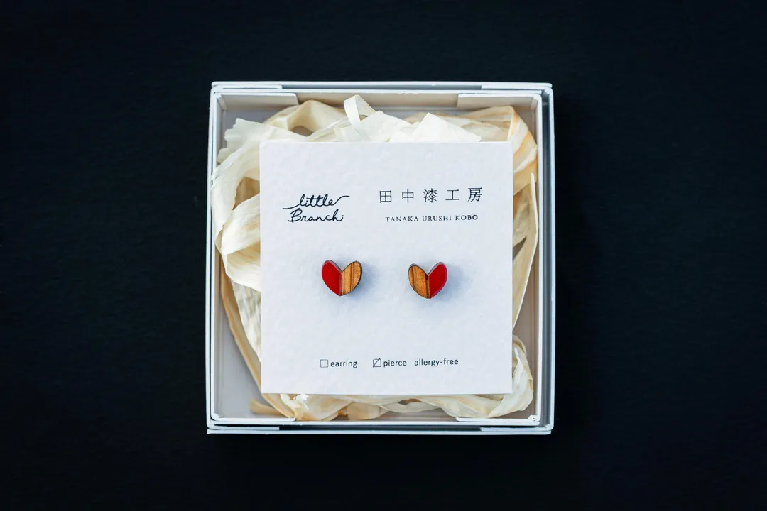 毎日の半歩先へ。 地域の木を身につけることを日常に。 愛媛県西条市の漆職人、田中漆工房とのコラボにより 愛媛県産の木のパーツに漆を施した新たなアクセサリーが生まれました。 木と漆両方の表情を味わうことができ、 和装はもちろん普段使いもしやすいデザインです。 こちらの商品は製作に1カ月ほどいただく場合がございます。 木と漆のアクセサリーのシリーズは箱入りでの納品となります。 【ピアス金具】 ポスト:ステンレス キャッチ:シリコン 金属アレルギーを起こしにくい素材を 使用しております。 【イヤリング金具】 痛くなりにくいクリップ式の金具です。