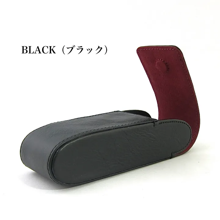 メガネケース ハードタイプ 縦型 イタリア製 バケッタレザー BLACK