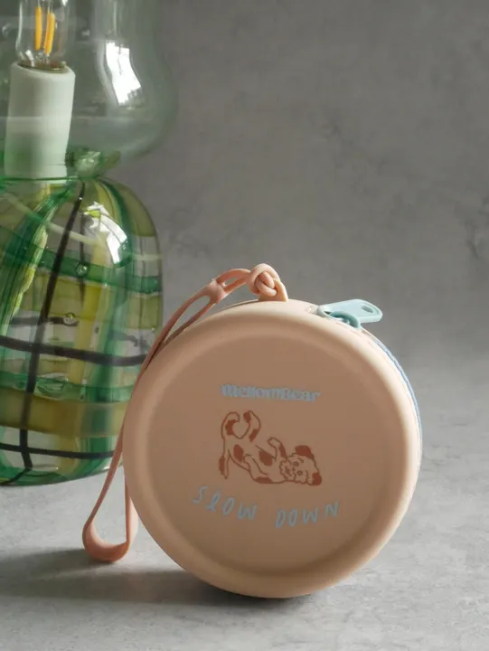 カラフルなお色が、とってもチャーミングなおやつ入れです。 おやつ入れ以外にもポーチとしても使い勝手が良さそうです。 シリコンなので汚れにくく、また洗っていただくこともできます。 手のひらにはまるコロコロしたデザインと ジッパーとのお色合わせがかわいい、サイズ感です。 さりげなくmellowbearのロゴも入っています♡ お散歩や、カフェタイムに楽しんでいただけると嬉しいです。 《サイズ》 全長:8.9cm 高さ:2.6cm 重さ:50g 《素材》シリコン チャック部分:布