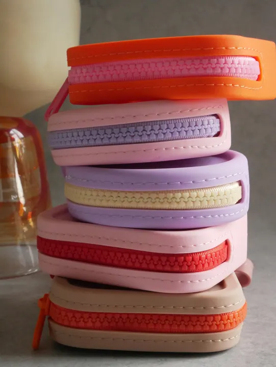 カラフルなお色が、とってもチャーミングなおやつ入れです。 おやつ入れ以外にもポーチとしても使い勝手が良さそうです。 シリコンなので汚れにくく、また洗っていただくこともできます。 手のひらにはまるコロコロしたデザインと ジッパーとのお色合わせがかわいい、サイズ感です。 さりげなくmellowbearのロゴも入っています♡ お散歩や、カフェタイムに楽しんでいただけると嬉しいです。 《サイズ》 全長:8.9cm 高さ:2.6cm 重さ:50g 《素材》シリコン チャック部分:布