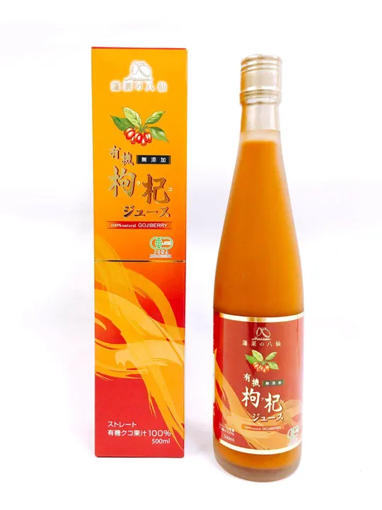 男性のガソリン・女性のエステ 飲むエステ と発売当初よりのキャッチコピーでロングセラーとなった、これこそが、 世界で初めて登場したオーガニッククコの実の原点です。 世界初を実現した有機クコジュースは、八仙が開発から携わり世界の有機クコの実の先駆けとなりました。 無添加の有機(オーガニック)で育った栄養たっぷりの新鮮クコ果実を有機認定工場にて種も皮も果肉もすべてを粉砕しました。まるごとミキサーにかけたイメージです。なので、果汁では珍しい良質の油として知られる《リノール酸、リノレン酸、オレイン酸》が含まれています。多様の栄養が自然由来で含まれており、特に近年は、ぼやけやショボショボ、かすみ、スマホアイでお悩みの方におすすめの成分として注目されている<ゼアキサンチン>含有量が食品中でも最大だと言われています。 クコ多糖類・アミノ酸18種(必須アミノ酸含む)ビタミン・ミネラル・不飽和脂肪酸等、栄養成分は全て自然含有!ルテイン・ゼアキサンチンはブルーベリーの約1000倍! あのミランダ・カーが常備していることでも知られるクコの実は、アスリートを始め日本でも人気モデルが愛用していることで話題となっています。漢方では古くから人々の健康に寄与され食歴の長さが素晴らしさを物語っています。英名を「GOJIBERRYゴジベリー」と言い、多様な栄養を含むことから近年は特に女性の健康にも期待されています。アメリカで大人気のスーパーフードは自然のサプリと言われているほど、そのパワーが今注目されています。世界的セレブや日本でも著名モデルたちがこぞって愛用しているスーパーフードを美味しく食べてきれいに!健康に! ※弊社全製品において、Amazonでの販売はお断りしております。 また、楽天、YAHOO、メルカリ等のモール販売につきましても一部お断りしておりますので、 予めご了承ください。