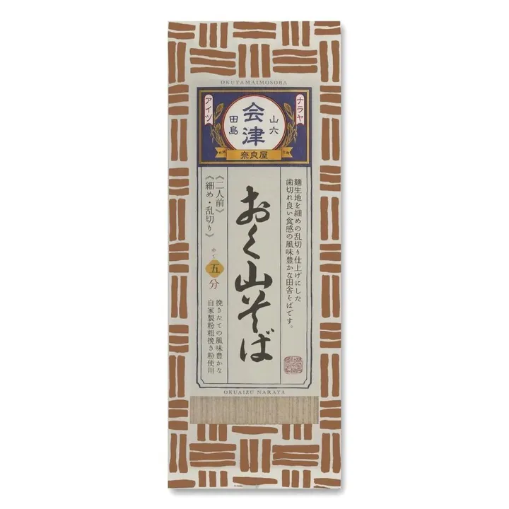 自家製粉の新鮮な粗挽きそば粉&会津の美味しい雪解け水&最高級の小麦粉を使用し、そば・そうめん・うどん等を作っております。趣・高級感のある綺麗な和紙袋入りです!
