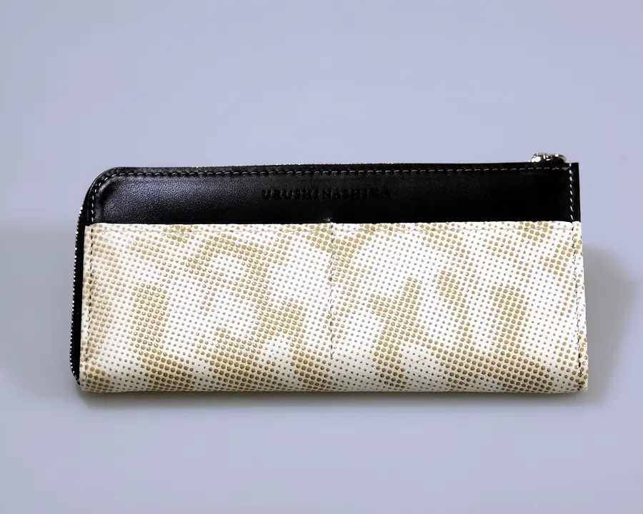 URUSHINASHIKAは山梨県の登録商標です。これまで廃棄されてきたニホンシカの皮を県の伝統工芸の一つである甲州印伝に有効利用しようというプロジェクトです。