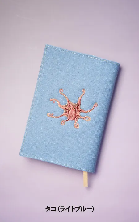 【文庫カバー 】ワンポイント 名入れ可能 刺繍 ブックカバー 日本製 honok ●タコ