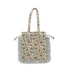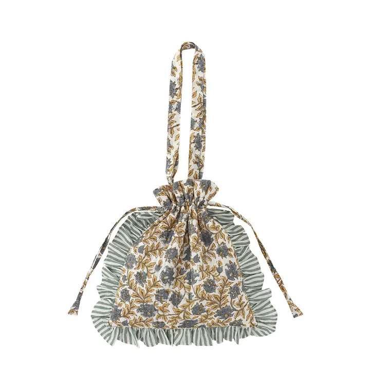 「カリーノ」は「かわいらしい」という意味。 ブロックプリントのキルティング生地とフリルがが可愛いトートバッグです。 心癒される優しい花柄がフェミニンな印象。 口を絞って小ぶりなバッグとして、絞らずに使えばA4サイズがすっぽりと収まります。 肩にかけられる持ち手の長さなので、たっぷり入れても持ち運びしやすいバッグです。 「ブロックプリント」は木版を使って、職人がひと版ひと版、手でスタンプを押すように生地の上にプリントするインドの伝統的な技法です。 ※表示数量を超える在庫や、詳しい納期につきましてはメッセージよりお問い合わせください。