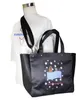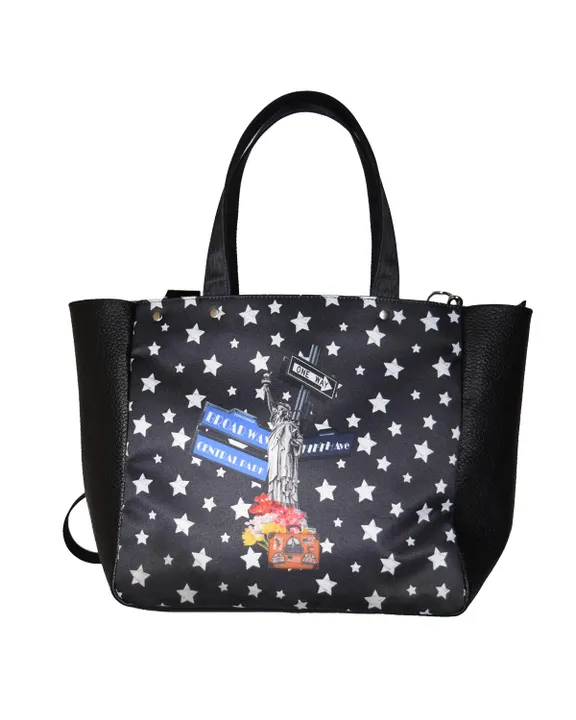 TP7080 牛革ファスナーNYC柄トートバッグ BLACK