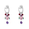 ハート&フラワーモチーフにストロベリークオーツをメインにした マルチカラーの天然石をふんだんに使ったスタッドピアス