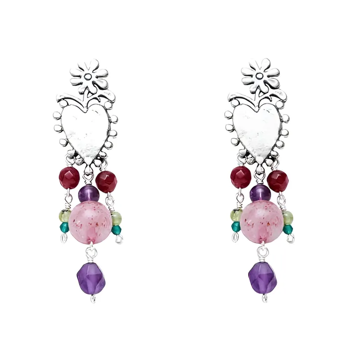Aretes Vida En Colores|ハートのピアス(シルバー・ストロベリークオーツ・天然石)