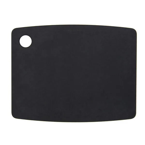 木の繊維を合成した素材を使用している耐久性に優れたカッティングボードです。表面は非多孔性で細菌が侵入しにくく、薄型なので食材を切ってそもままお鍋にサッと入れることができます。水切れがよく、お手入れも簡単で食器洗浄機にもお使いいただけます。毎日のお料理作りだけでなく、盛り付け用のボードとしても大活躍!端に穴がついているのでフックにかけて収納いただくことも可能です。