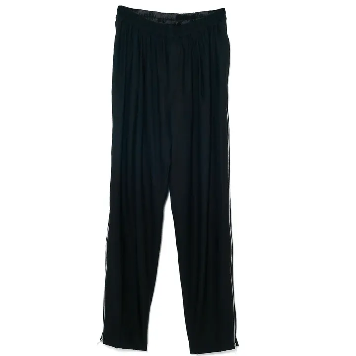 環境配慮型の高品質なストレッチサテンをベースに メタリックカラーが目を惹くインパクトのある別布、ランダムプリーツが入った表面変化が存在感のある別布を贅沢に掛け合わせた3WAYで履いて頂けるパンツです。 肌ざわり良くストレッチが効いてストレスフリーな1本でマルチにお使い頂けるアイテムです。 【ギミック】 両サイドに配置したファスナーを裾から上にオープンするとマチが現れシルエットが変わります。 マチにもファスナーが付いていて、オープンすると更にマチが出てきてシルエットが変わります。 ファスナーを全て閉じた状態だとサルエルパンツとして。 1段階オープンした状態でストレートパンツ。 2段階オープンすればワイドパンツに。 そして素材感の違うマチがサイドデザインになり、3WAYでお使い頂けます。 ---MADE IN JAPAN--- 品番:CH2405-006 商品の着用詳細を動画でご紹介しています。 以下のリンクよりご覧いただけます↓ https://www.youtube.com/shorts/r0BnhpsK6KU