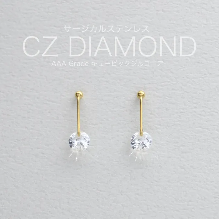 上品な印象を与えてくれる繊細で華奢なイヤリングです。 つけていることを忘れるほど軽く、肌に優しいストレスフリーのサージカルステンレス製です。 どんなスタイルにも合わせやすいシンプルなピアスは、自分へのご褒美はもちろん、ギフトや大切な人へのプレゼントに喜ばれます。 とても軽くシリコン製の滑り止めもあるので、強い力で挟む必要がなく 長時間でも耳が痛くなりません。挟む力は指で拡げて調整できます。 金属アレルギー対応のサージカルステンレス製で肌に優しい素材です。 イヤーカフとしても使える2wayタイプでピアス派の人にも重ね付けアイテムとしておすすめです! ゴールドとシルバーのどちらかをお選びいただけます。お肌の色に合わせたり、お手持ちのアクセサリーと相談するのもいいですね。 ○今注目の環境に優しい人工石 キュービック ジルコニアはダイヤモンドの代替品として使われる人工石です。自然から採掘しないため環境負荷が少ないジュエリーとして注目されています。 自然を愛する私たちにとって環境に配慮された物作りは嬉しいですよね。 ○つけっぱなしOK!サージカルステンレスイヤリング 医療現場でも使われる高品質なステンレスです。人体に影響を与えにくいので金属アレルギーの方にも優しい選択肢となっています。 ○環境への配慮 付属のジュエリーボックスに再生紙を使用しています。ギフト用にもふさわしいお洒落な質感と環境への配慮を両立したボックスです。 CZダイヤ(キュービックジルコニア)5mm (AAAグレード) 長さ:約1.4cm 重さ:約0.3g 金属パーツ:サージカルステンレス