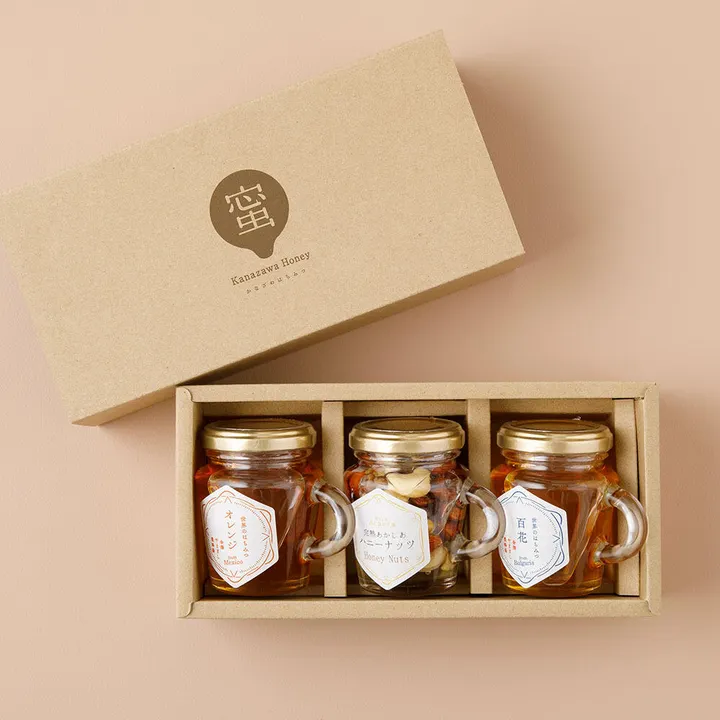 はちみつ130g×3本サイズにぴったりのギフト箱。贈り物にどうぞ。 中のはちみつは別途ご注文が必要です。 お好きな130gのはちみつを3本お選びください。 ※画像に載っているはちみつ商品はイメージです。