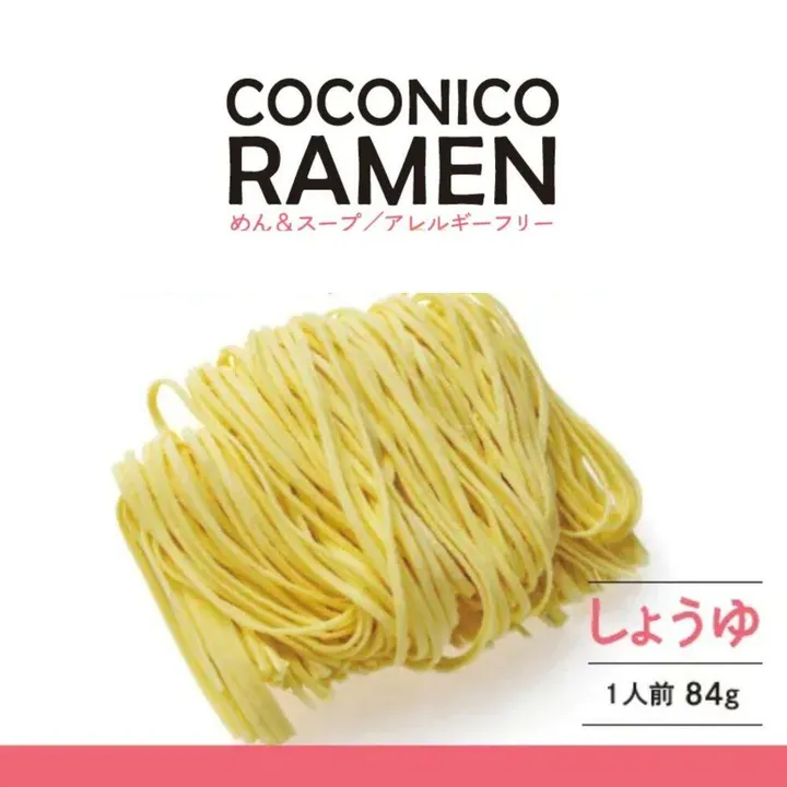子供から大人まで安心して召し上がれるしょうゆ味の「インスタントラーメン」です。 小麦を一切使わず身体に優しいアレルゲンフリーで、麺は熊本産米粉を使用した乾燥麺、スープは動物性の原料が不使用となっております。 【原材料名】 麺[米粉(国内製造)、馬鈴薯でん粉/加工デンプン、増粘剤(アルギン酸エステル)、着色料(ビタミンB2)] スープ[食塩(国内製造)、粉末しょうゆ、ぶどう糖、砂糖、粉末豆乳、酵母エキス、昆布粉末、たん白加工水分解物、オニオンパウダー(一部に大豆を含む)] 【内容量】 84g(麺75g・スープ9g) 【保存方法】 直射日光/高温多湿を避けて冷暗所で保存してください 【栄養成分表示(84g)当たり】 エネルギー 289㎉、たんぱく質 4g 、脂質 1g、 炭水化物 65g、 食塩相当量 4.6g