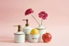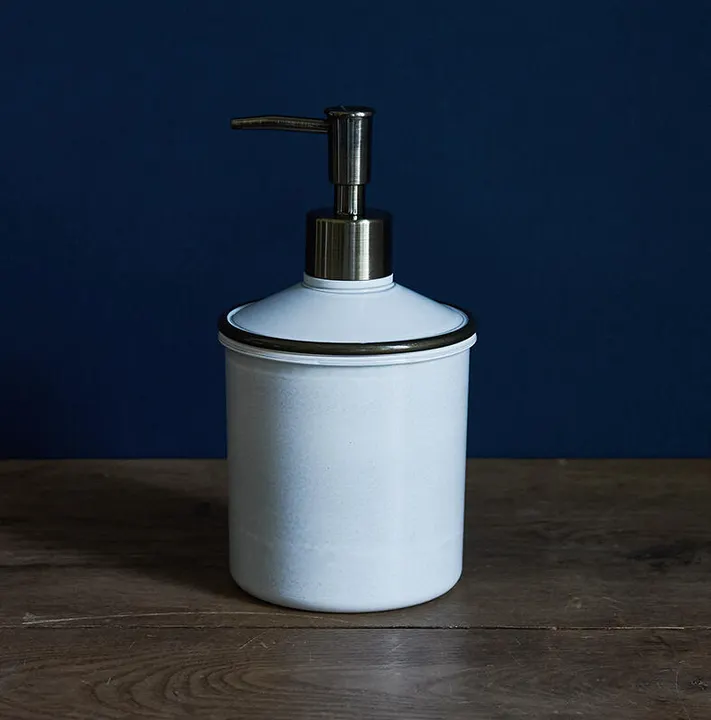「Looks Like a POTTERY」 まるで陶器のような佇まいの樹脂製のディスペンサー。 陶器よりも軽く、割れにくいのが特徴です。 職人によりひとつひとつ丁寧に塗られ 機械では味わえない魅力を持ったアイテムです。 リムに施されたゴールドリングがバスルームに 上品さを与えてくれます。