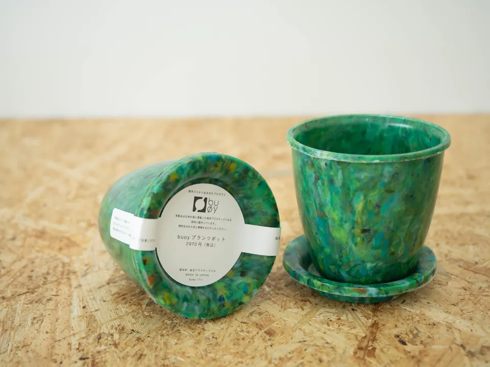 海洋プラスチックごみのアップサイクルブランド「buøy(ブイ)」では、偶然漂着したプラスチックごみを材料に唯一無二の模様と色が魅力の製品を多数展開してます。