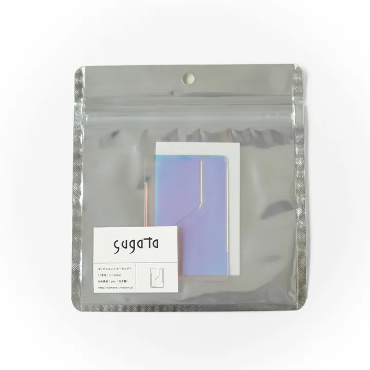 新しい収納位置 | キーケースです。わずか 1mm 厚の PVC 製で、 大きさはカードサイズよりも 一回り小さく できているため、お手持ちのカードケースや 財布、ポーチの中などに収納することができます。 かろやかな使い心地を実現する新しいツールです。