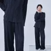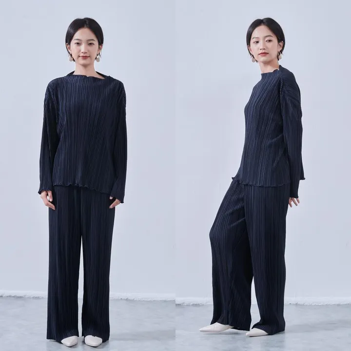 KNNP365-プリーツ加工・カットソーワイドパンツ・アップサイクル・イージーパンツ NAVY/FREE