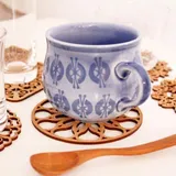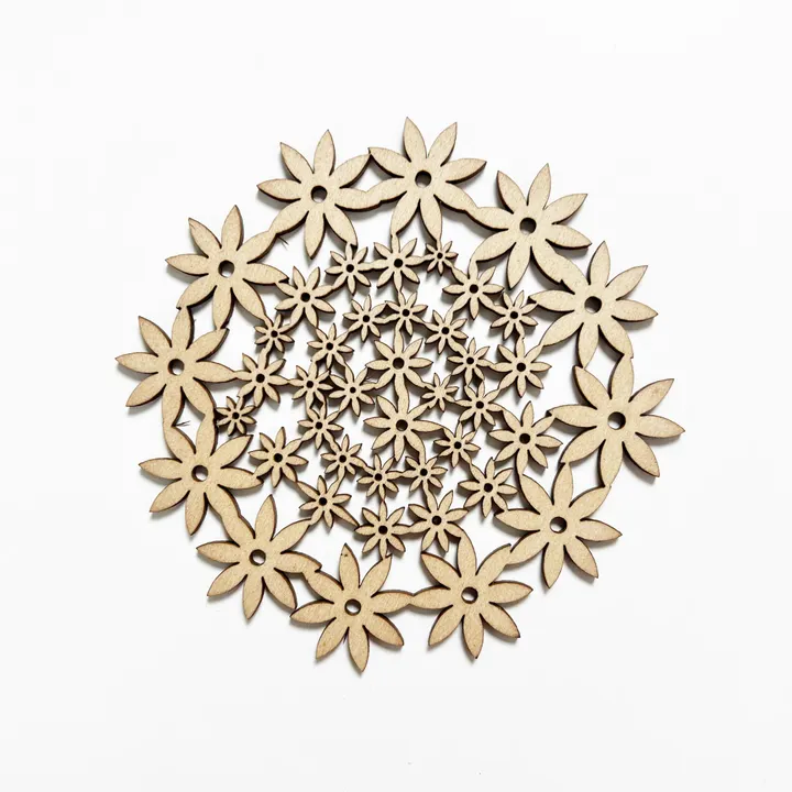 リトアニアで製作しているコースターです。 焼け跡の残らない技法を使用し、レーザーで切り抜いたデザインです。
