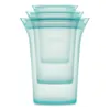 ぽってりとした形状の「カップ」シリーズのサイズ違いのセットです。ほど良い高さと円形のマチはカップのようにお使いいただけるデザインです。ピクルス作りや、スナックの保存にもお使いいただけます。蓋がZip式のため、口を開けてサイズ違いでスタッキングが可能です。場所を取らずに収納できて、便利です。