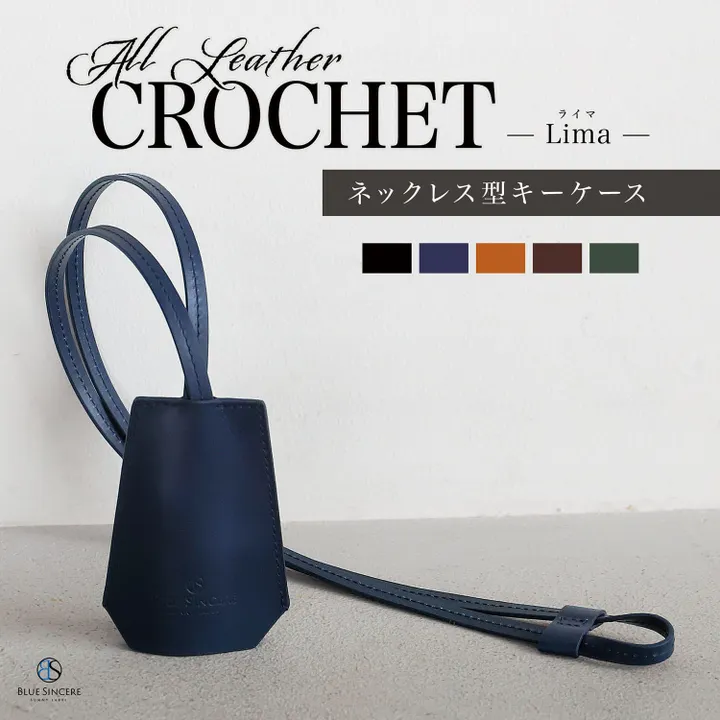 【 ブルーシンシアとは? 】 「ブランドの発展とともに、バングラデシュの社会問題を解決する」という理念を掲げ、 バッグや財布を自社工場のバングラデシュの職人たちと、その土地の素材の可能性を追求し、 先進国でも通用する高機能なプロダクトを生産しています。 【 ネックレスとして、キーケースとして 】 キークロシェットとはストラップ先の二重リングに鍵を装着し、鍵を使用する時は本体から引っ張り出して使用するものです。鍵は最大で4本収納可能です。 普段はストラップを引いて本体の中に鍵を収納するので鍵同士がぶつかる耳障りな金属音も防ぎます。 メンズ、レディース問わず長さ調整ができるので、ネックレスとして首から下げるだけでなく、カバンの持ち手に結んで使ったりとアクセサリー感覚でご使用可能です。 【 イタリア革を100%贅沢使用 】 毎日手に触れるキーホルダーだから本当にいい素材のモノを使って欲しい。そんな想いから贅沢にイタリアンレザーを100%使用しました。 イタリアンレザーは、傷や汚れに強い素材なので、毎日ハードな使用にも耐える事ができます。 使えば使うほど艶が出てくる革で、多少の傷がついても擦ってあげると傷は目立たなくなります。 【イチオシポイント♪】 ネックレスとして首にかけられるアクセサリー型キーケースの登場です。鍵は最大で4本まで収納可能。商品にキーリングもセットでついているので便利♪首にかける紐は長さの調整ができます。首にかけるもよし、バッグなどにアクセサリーのようにつけるのもおしゃれです。ブル―シンシアの代名詞、高級イタリアンレザー仕立てのクロシェット。お子様からお年寄りの方までご利用いただける一品でございます。ブラック、キャメル、ブラウン、ネイビー、グリーンの5カラーよりお選びください。