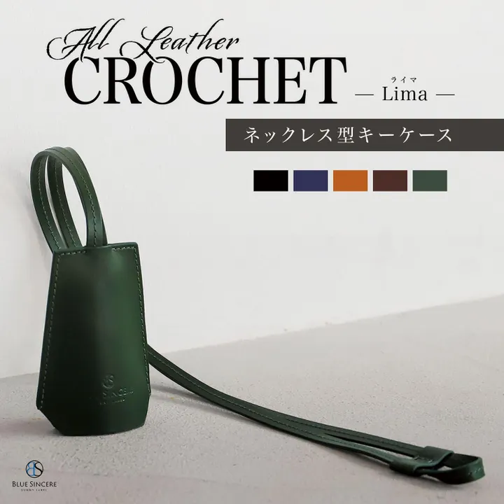 【 ブルーシンシアとは? 】 「ブランドの発展とともに、バングラデシュの社会問題を解決する」という理念を掲げ、 バッグや財布を自社工場のバングラデシュの職人たちと、その土地の素材の可能性を追求し、 先進国でも通用する高機能なプロダクトを生産しています。 【 ネックレスとして、キーケースとして 】 キークロシェットとはストラップ先の二重リングに鍵を装着し、鍵を使用する時は本体から引っ張り出して使用するものです。鍵は最大で4本収納可能です。 普段はストラップを引いて本体の中に鍵を収納するので鍵同士がぶつかる耳障りな金属音も防ぎます。 メンズ、レディース問わず長さ調整ができるので、ネックレスとして首から下げるだけでなく、カバンの持ち手に結んで使ったりとアクセサリー感覚でご使用可能です。 【 イタリア革を100%贅沢使用 】 毎日手に触れるキーホルダーだから本当にいい素材のモノを使って欲しい。そんな想いから贅沢にイタリアンレザーを100%使用しました。 イタリアンレザーは、傷や汚れに強い素材なので、毎日ハードな使用にも耐える事ができます。 使えば使うほど艶が出てくる革で、多少の傷がついても擦ってあげると傷は目立たなくなります。 【イチオシポイント♪】 ネックレスとして首にかけられるアクセサリー型キーケースの登場です。鍵は最大で4本まで収納可能。商品にキーリングもセットでついているので便利♪首にかける紐は長さの調整ができます。首にかけるもよし、バッグなどにアクセサリーのようにつけるのもおしゃれです。ブル―シンシアの代名詞、高級イタリアンレザー仕立てのクロシェット。お子様からお年寄りの方までご利用いただける一品でございます。ブラック、キャメル、ブラウン、ネイビー、グリーンの5カラーよりお選びください。