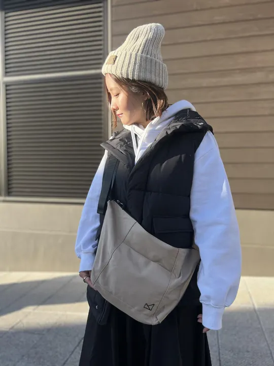 人気のボディバッグ。ショルダーストラップを柔らかくして、肩が痛くなりにくい仕様です。荷物の整理がしやすいようたくさん機能的なポケットがついています。右左どちらからも開けられるWファスナーになっています。